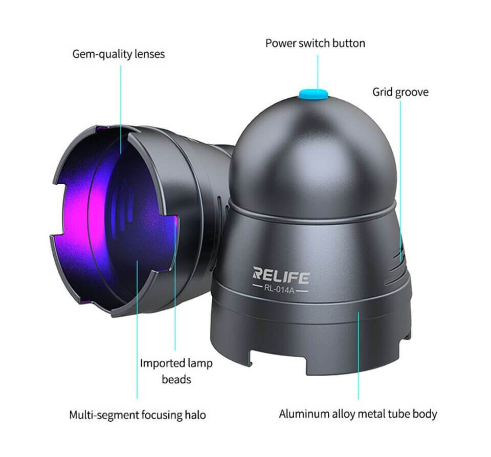RELIFE RL-014A UV Curing Lamp USB LED High Power T6 Fast Adhesive Green Oil Purple Light Phone Motherboard Repair Lamp