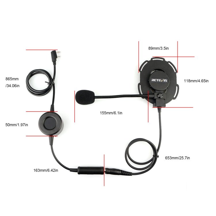 RETEVIS EH060K 2 Pin PPT Waterproof Tactical Military Headphone Microphone, EH060K