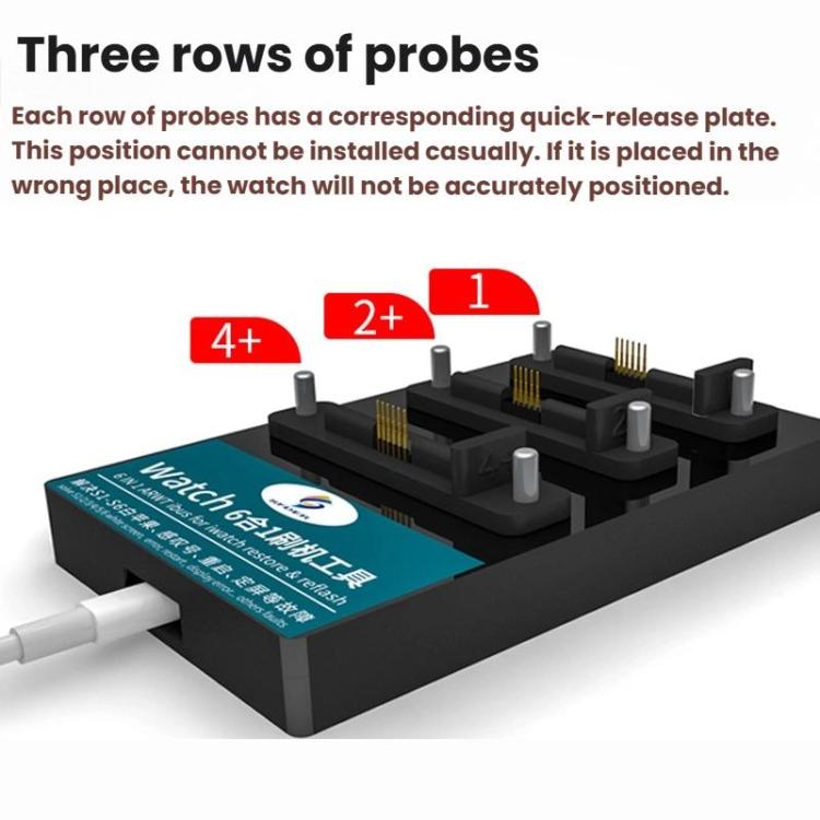 3. Three rows of probes, each corresponding to a specific quick-mount board. Improper placement may cause inaccurate watch positioning