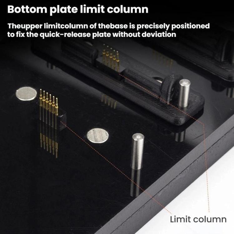 4. Metal positioning pins/base plate limiters ensure precise alignment and secure quick-mount plates without shifting