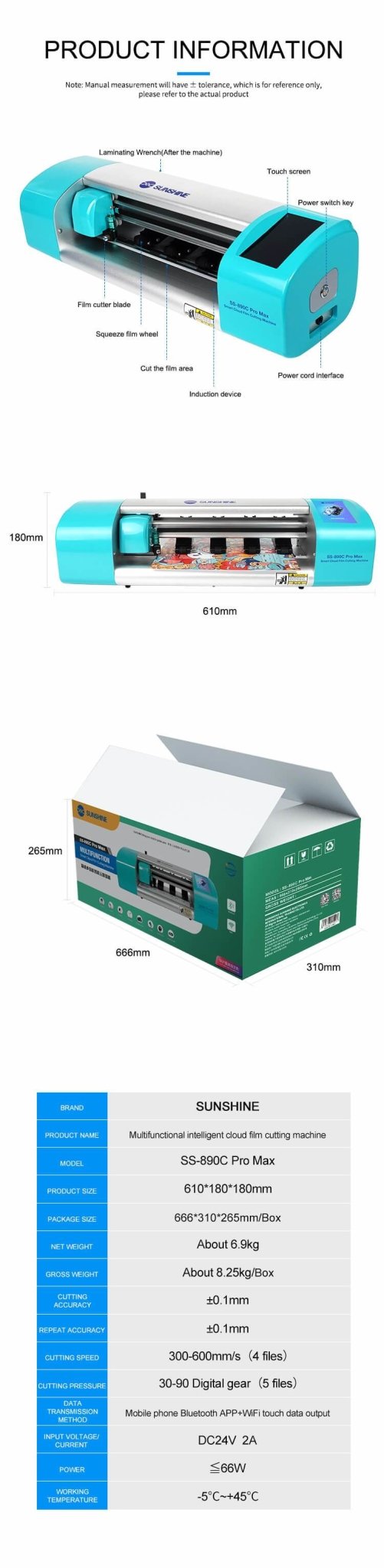 Applicable to all kinds of mobile phone front and black membrane cutting, perfect fit with the front and back of the phone Cloud Database - Live Update Have a separate operating system, no need to connect to a computer Mobile phone APP operation, Bluetooth connection.
