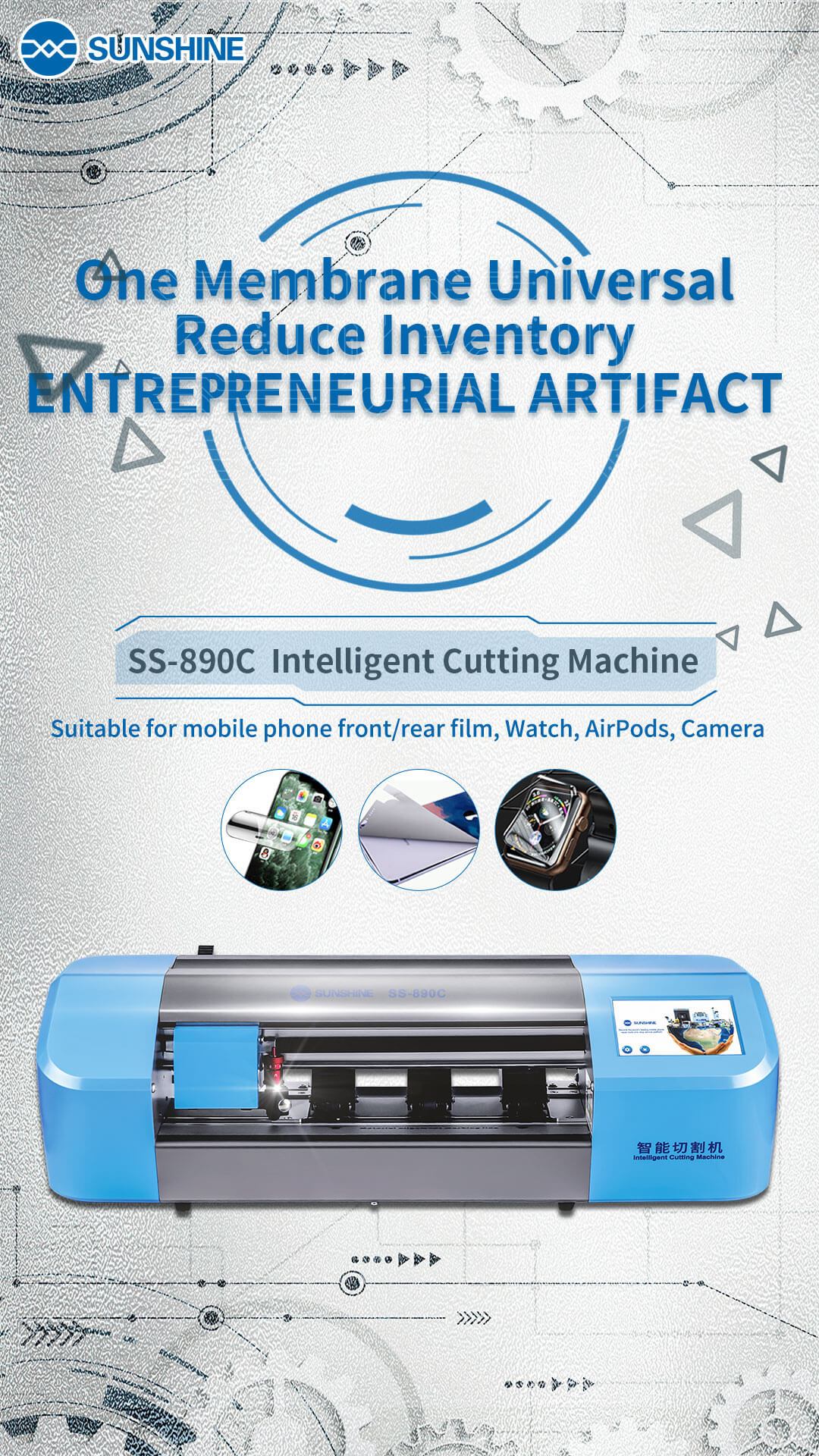 SS-890C Sunshine intelligent flexible hydrogel film screen protect cutting machine custom for any mobile phone