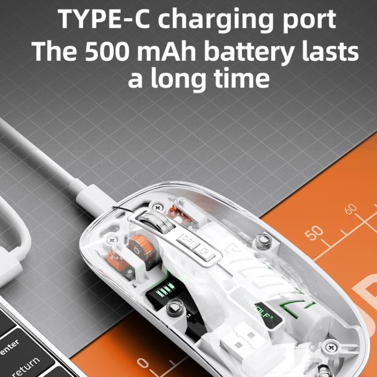 T-WOLF X11 Transparent Wireless Mouse Dual Mode 2.4G+Bluetooth, USB-C Rechargeable with Magnetic Cover