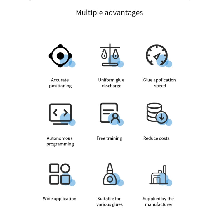 3. The size, thickness, and speed of glue can be adjusted, and powerful process control, no wire drawing, no glue leakage, no glue dripping