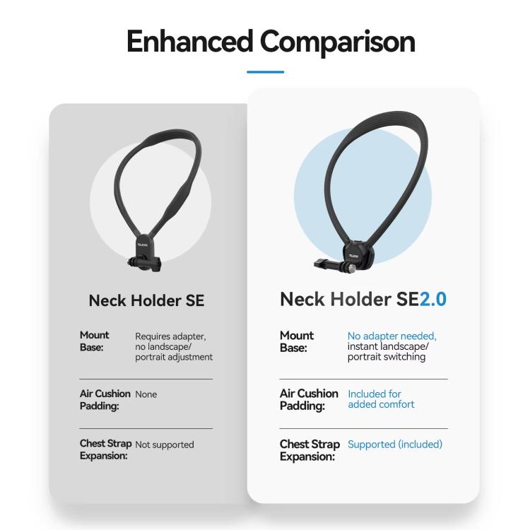 TELESIN Action Camera Neck Holder SE2.0 POV Perspective Bracket With Adjustable Chest Strap, SE2.0 Black, SE2.0 Gray
