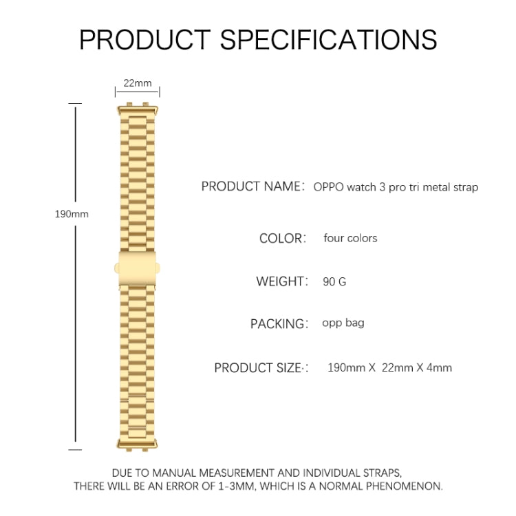 Three-bead Flat Buckle Stainless Steel Watch Band, For OPPO Watch 3 Pro, For OPPO Watch 3
