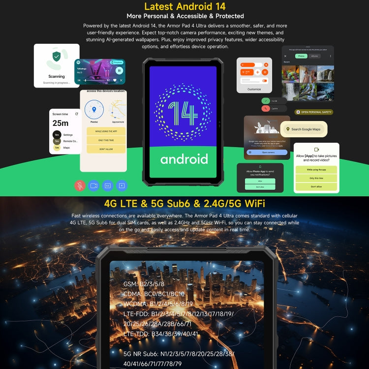 Ulefone Armor Pad 4 Ultra Rugged Tablet PC, 10.36 inch Android 14 MediaTek Dimensity 6300 Octa Core 5G Network, EU Plug, Armor Pad 4 Ultra