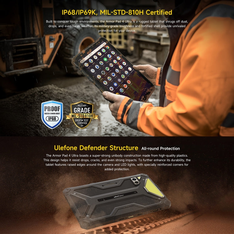 Ulefone Armor Pad 4 Ultra Thermal Version Rugged Tablet, 10.36 inch Android 14 MediaTek Dimensity 6300 Octa Core 5G Network, EU Plug, Armor Pad 4 Ultra Thermal Imaging
