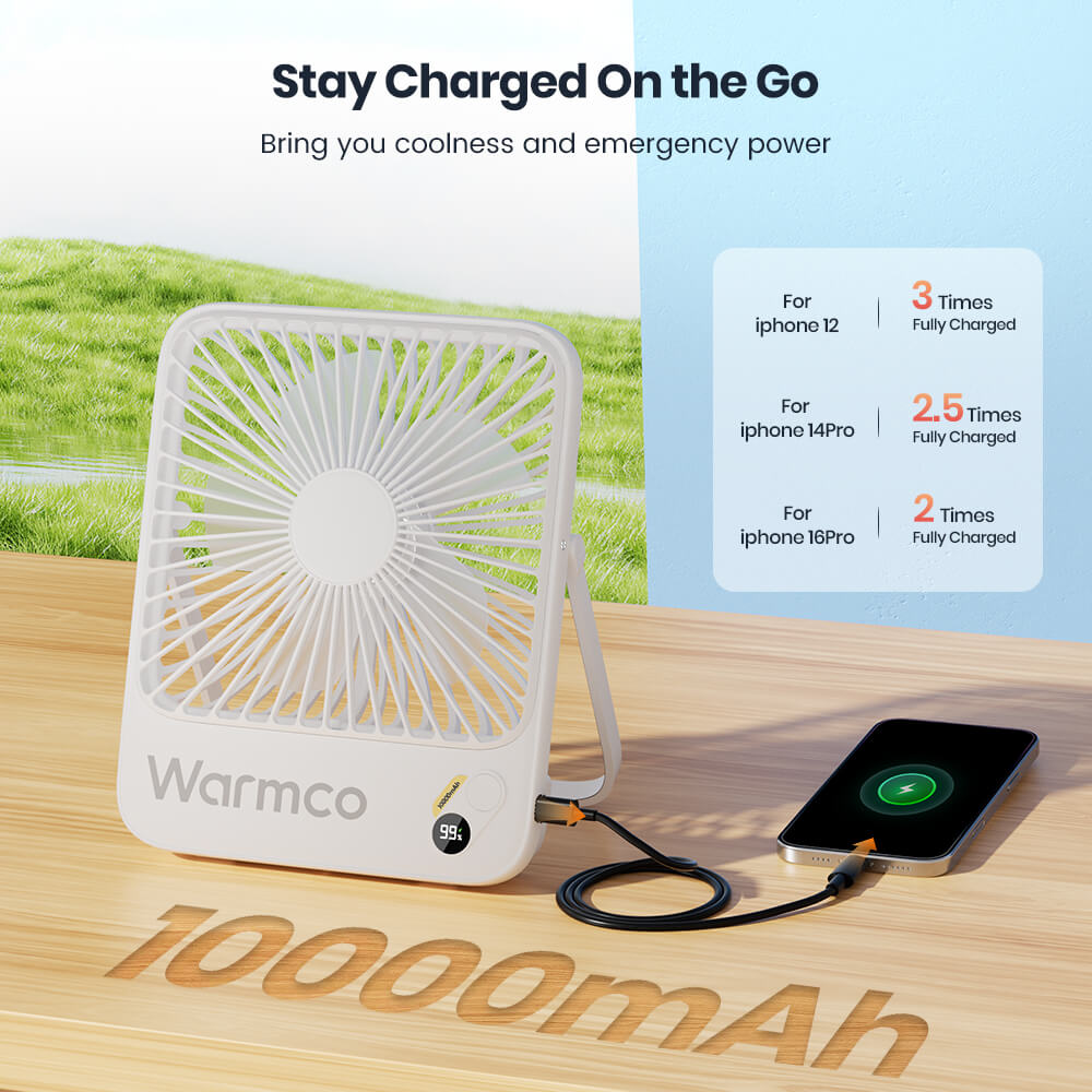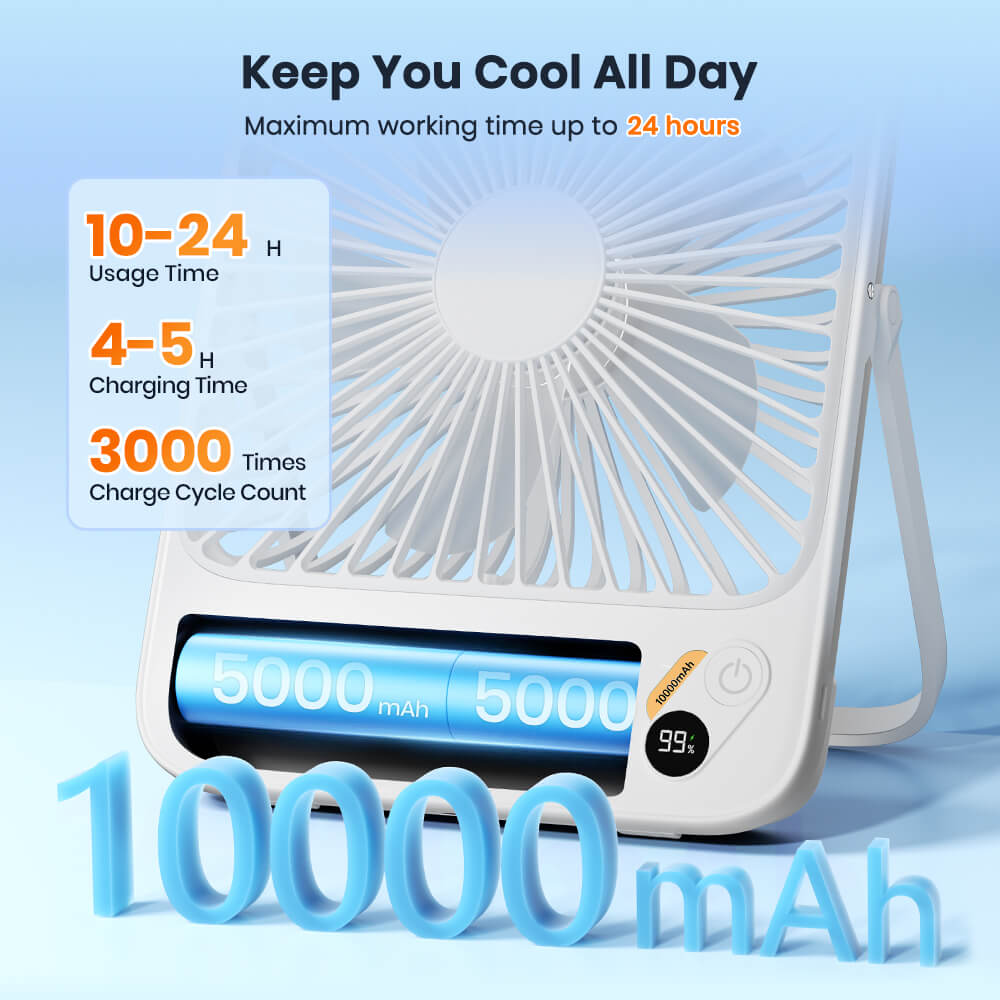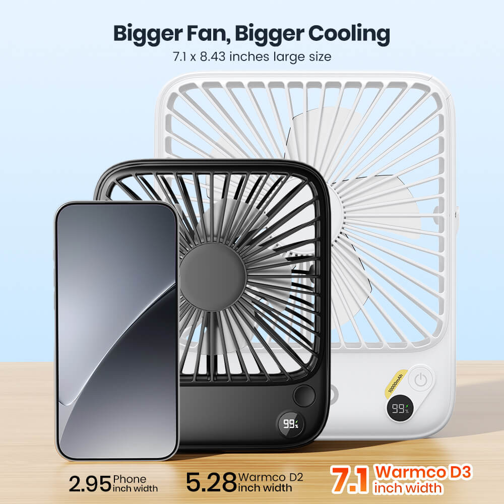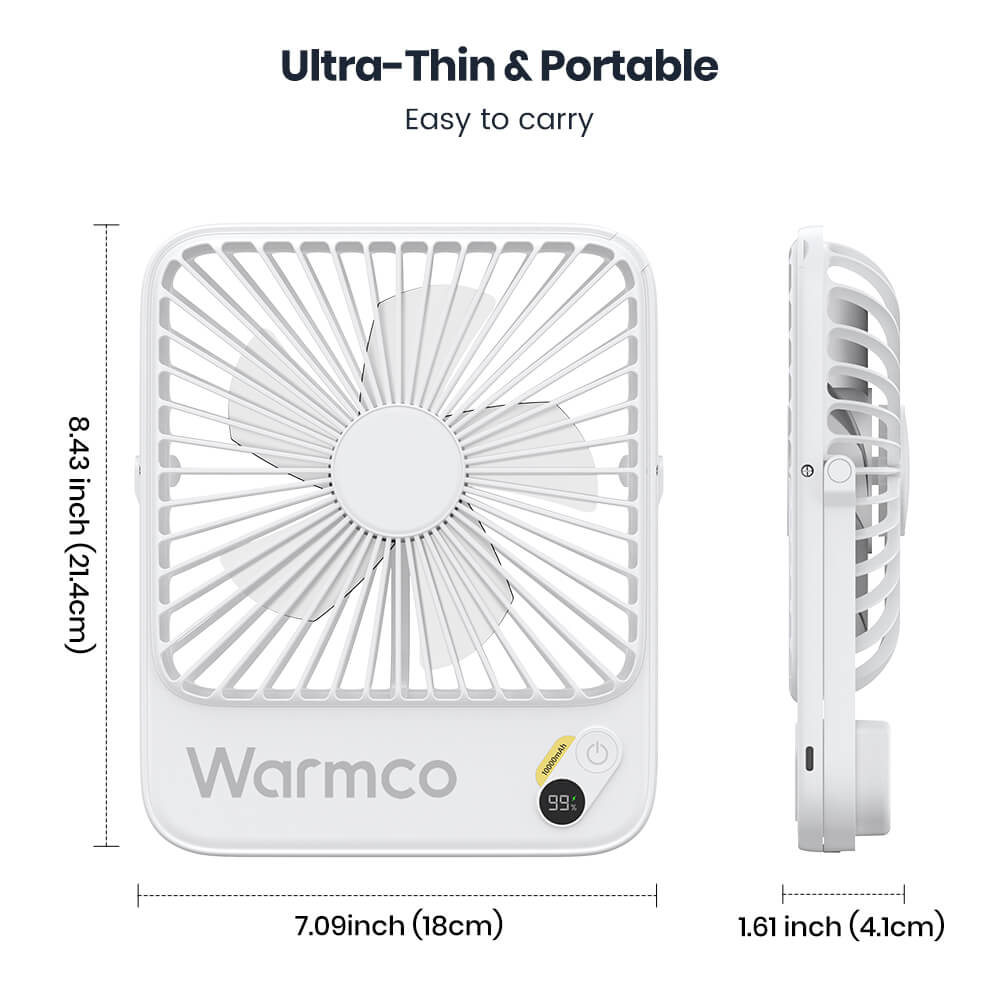 US Warehouse | Warmco 10000mAh Portable 7-Inch Travel Fan – Ultra-Thin Battery Operated Mini Desk Fan with Digital Display, 10–24H Runtime, for Bedroom, Camping, Cruise Essentials & Outdoor Use