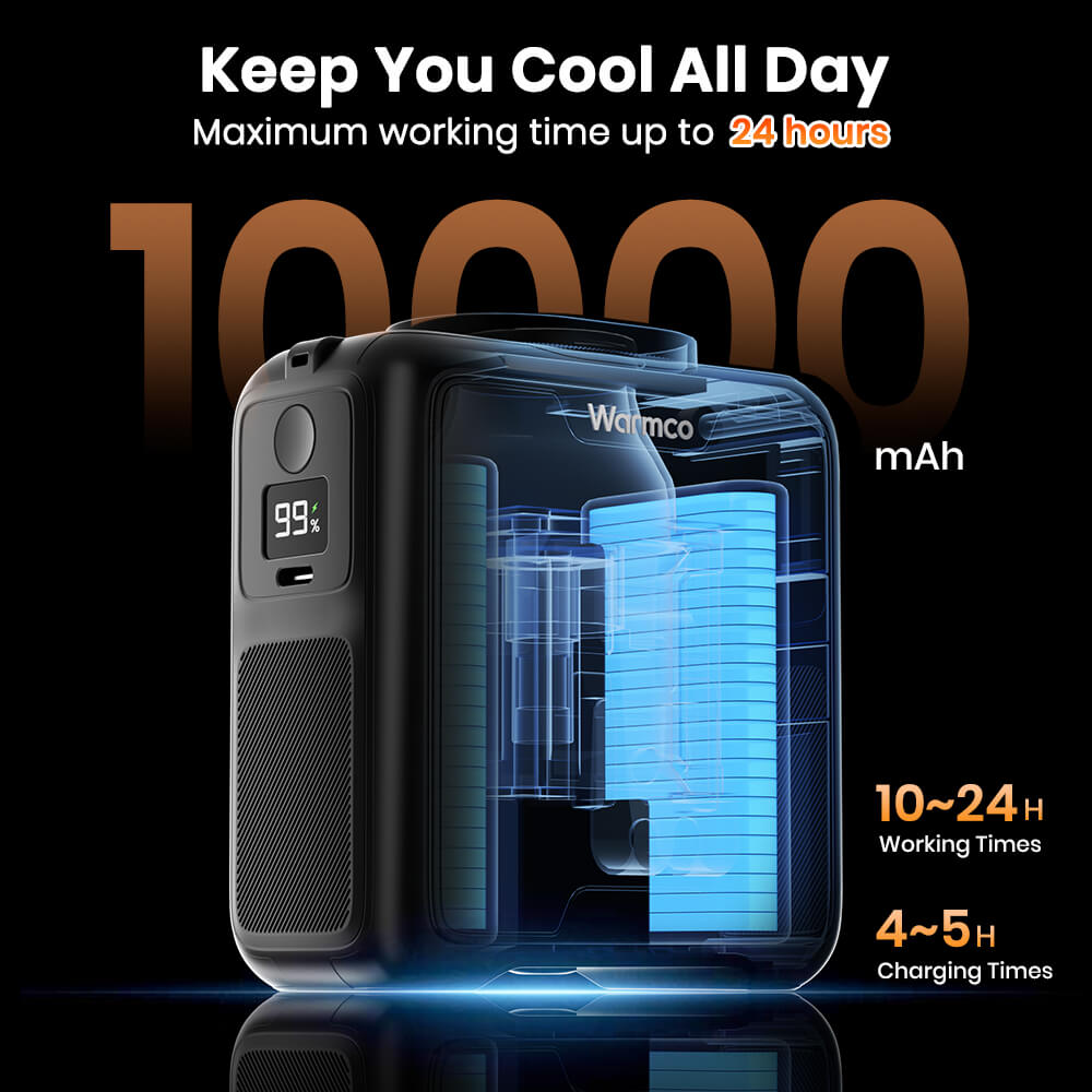 Equipped with a high-speed 16000RPM motor, this wearable fan offers 10 levels of airflow, allowing you to tailor the cooling to your environment. Whether you’re working under the sun or on the move, stay cool and sweat-free.