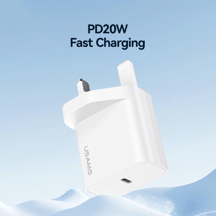 USAMS CC227 T65 PD20W USB-C / Type-C Single Port Fast Charger, UK Plug
