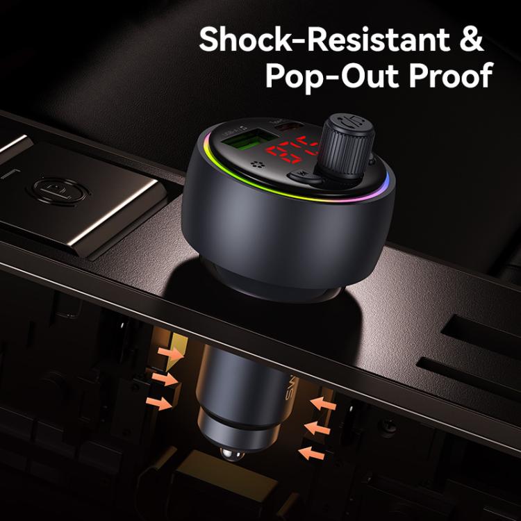 USAMS CC328 30W USB and Type-C Car Fast Charger Digital Display Bluetooth FM