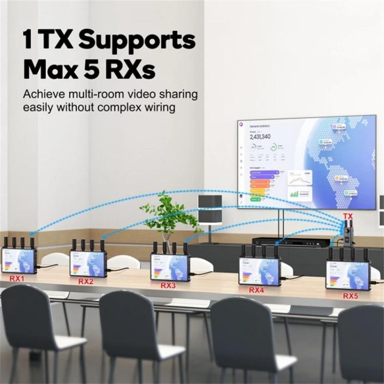 2.Multi-Device Connectivity:Features "1tx - 5rx" transmission, allowing one transmitter to connect with up to five receivers simultaneously.