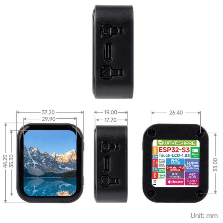 6. Onboard 1.83-inch capacitive touch LCD screen, 240 × 284 resolution, 65K colors.