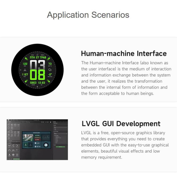 5. 2.1 inch capacitive touch HD IPS screen on board, 480 x 480 resolution, 65K color, can clearly display color images