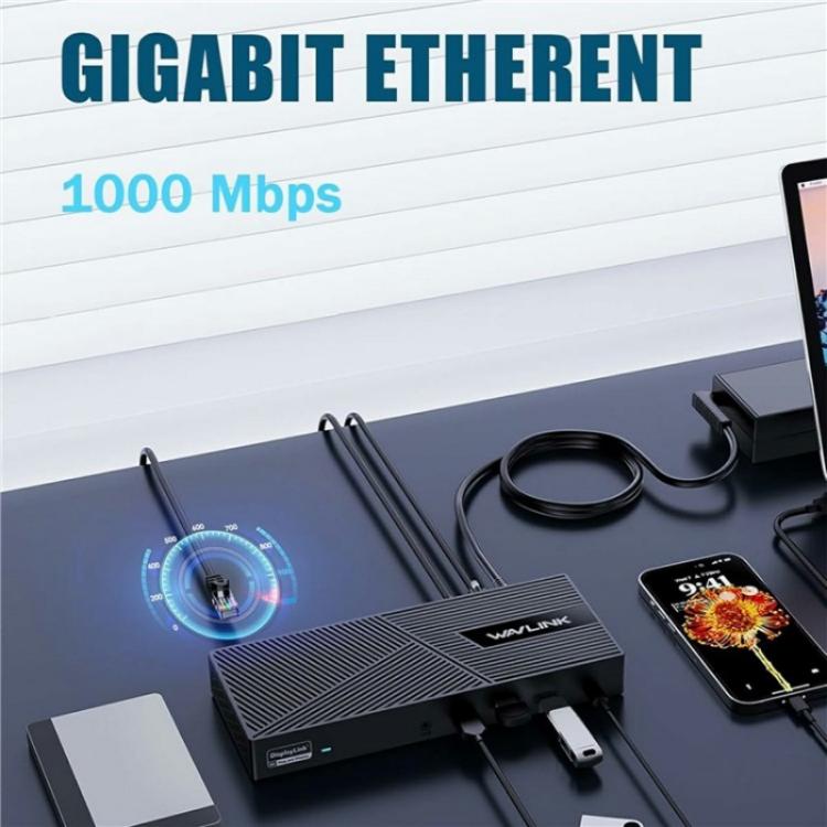 WAVLINK UG63PD25 15 in 1 DisplayLink Docking Station Support Triple Display 130W Power-in