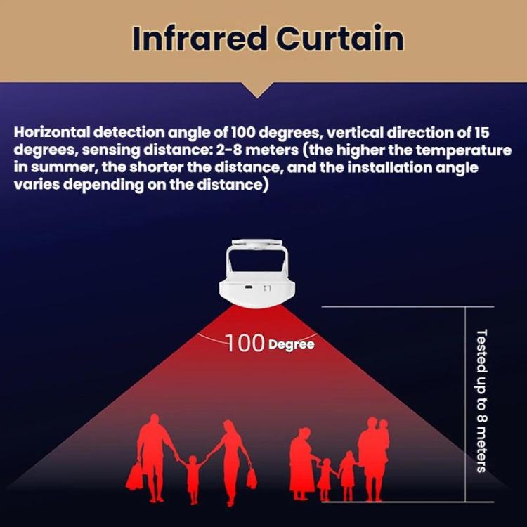 6. Infrared curtain battery life: 5-7 months (based on 30 detections per day)