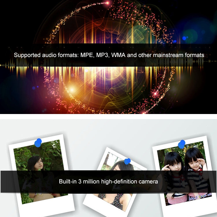 5. Supports sound recording (MP3 / WAV / WMA), music playback (APE / MP3 / WMA), video playback (MKV / AVI / RM / RMVB / WMV / MP4 / MOV / VOB / DAT / FLV / 3GP / H.264) and AV composite signal output (720*480)