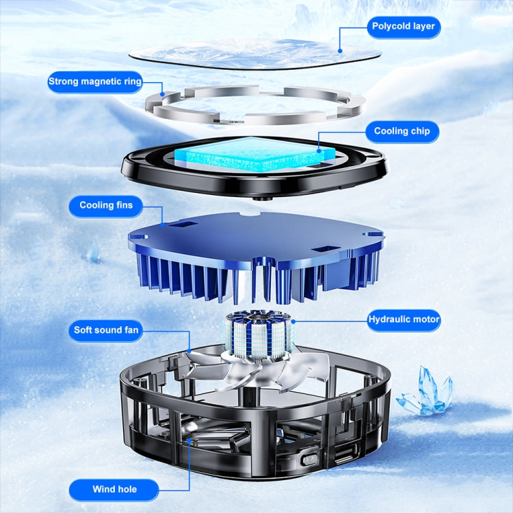 X76 Magnetic Digital Display Semiconductor Mobile Phone Radiator with Chip, X76 Black Gold