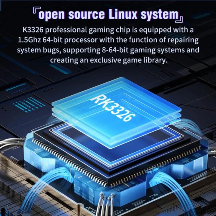 2. Open-source Linux System with K3326 Gaming Chip: Powered by a 1.5GHz 64-bit processor, system bug fixes, and support for 8-64-bit game systems. Build your exclusive game library.