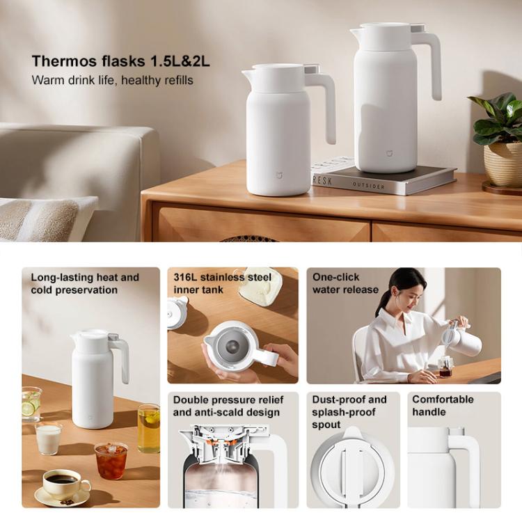 Xiaomi Mijia Stainless Steel Thermos Flask, 1.5L, 2L