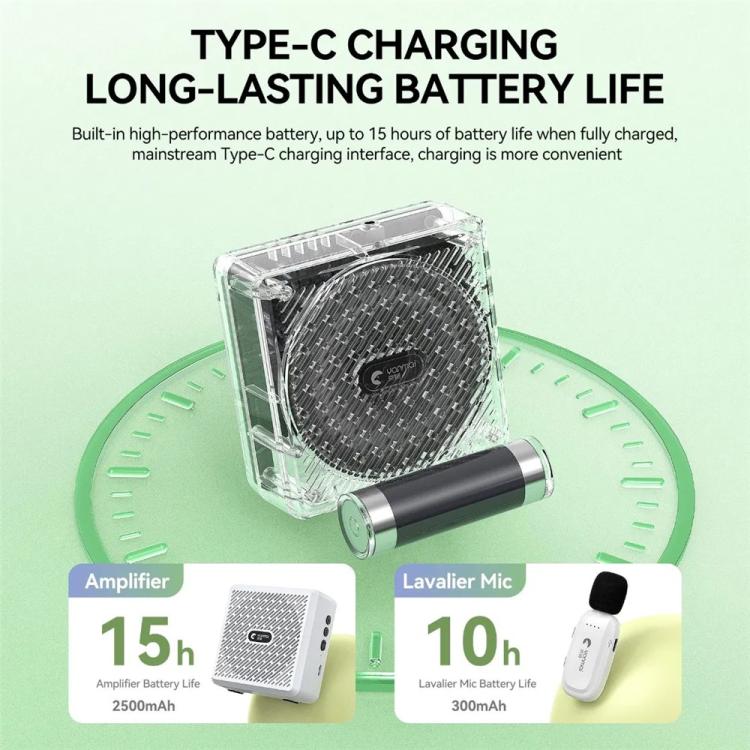 4. Extended Battery Life: Large 2500mAh lithium battery in amplifier provides over 15 hours of continuous use, while 300mAh microphone battery lasts up to 10 hours, perfect for all-day teaching sessions.