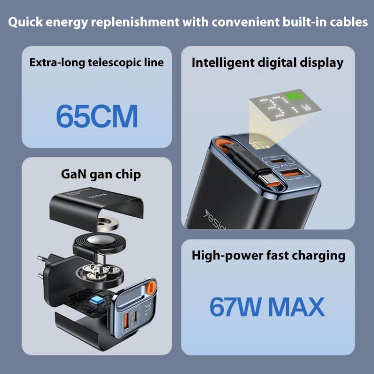 Yesido YC100 67W Fast Charger with Telescopic Type-C Cable, YC100