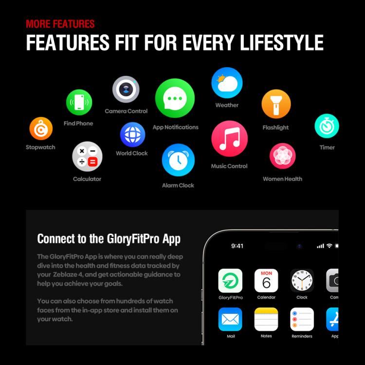 12. Lifestyle Features: Bluetooth Phone Calls, Voice Assistant, Controls Smartphone Music and Camera, Phone Call Notifications, SMS Notifications, App Notifications, Find My Phone, World clock, Time/Date, GPS Time Sync, Automatic Daylight Saving Time, Stopwatch, Timer, Alarm Clock, Weather Sync, Flashlight, Calculator, Password Setting, Raise to Wake, Power Saving Modes, Do Not Disturb Modes, AOD Modes, Screen Locked Modes, Slient Modes