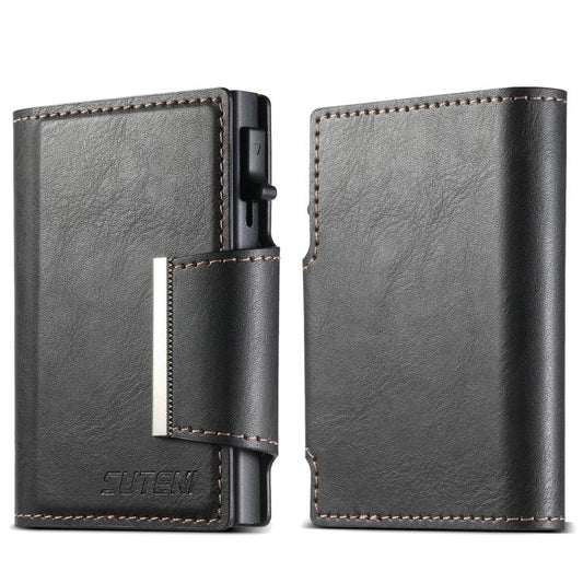 Suteni oil wax-patterned left and right buckle buttons automatically pop out the card box
