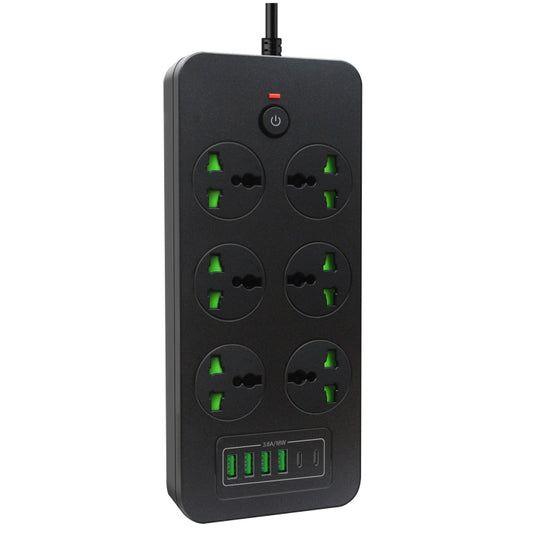 Thunderproof Overload Protection 4USB+2PD+6 Holes Socket, Black UK Plug