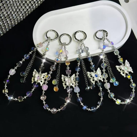 Laser Crystal Butterfly Pearl Mobile Phone Chain