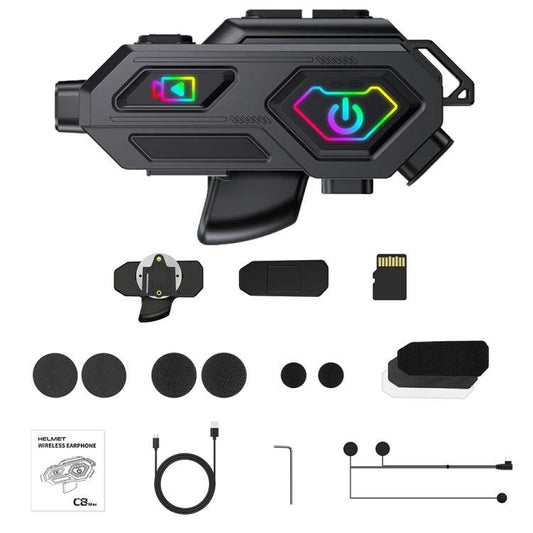 C8Max Motorcycle Intercom Video Helmet Bluetooth Headset HD Video Recorder, Soft Mic, Hard Mic, Soft and Hard Mics